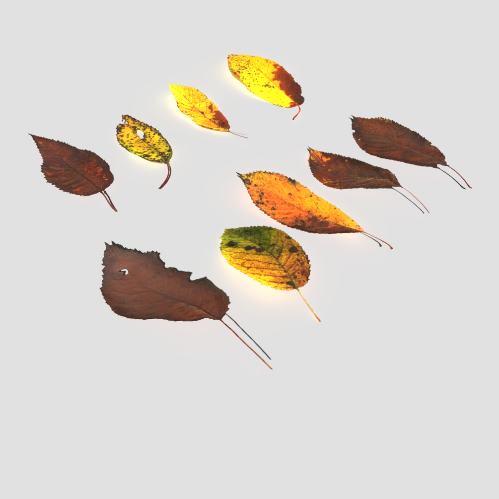 This is Dry Cherry Leaves pack created in Blender. It includes 9 different models in real world scale (17cm-25cm). It comes in following formats: