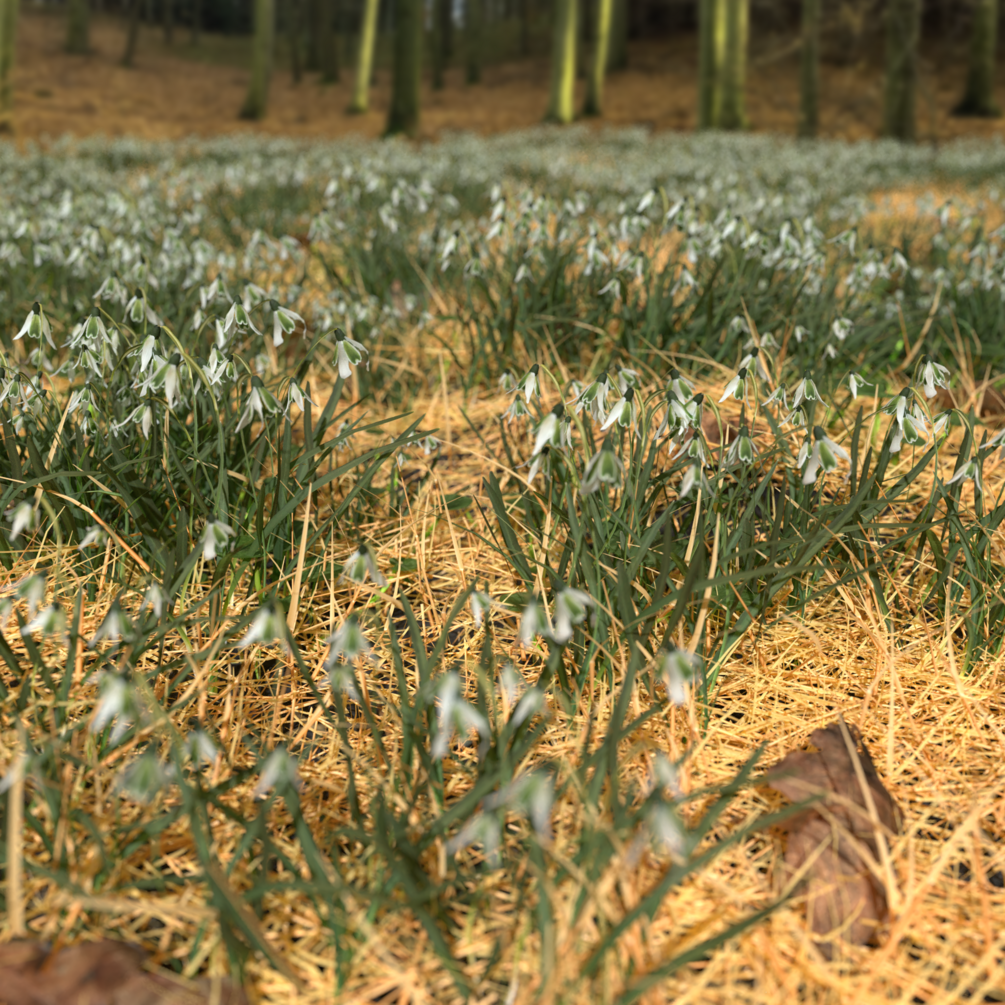 This is PBR Common Snowdrop meadow patch created in Blender in real world scale (100cm x 100cm). It includes 5 different models: