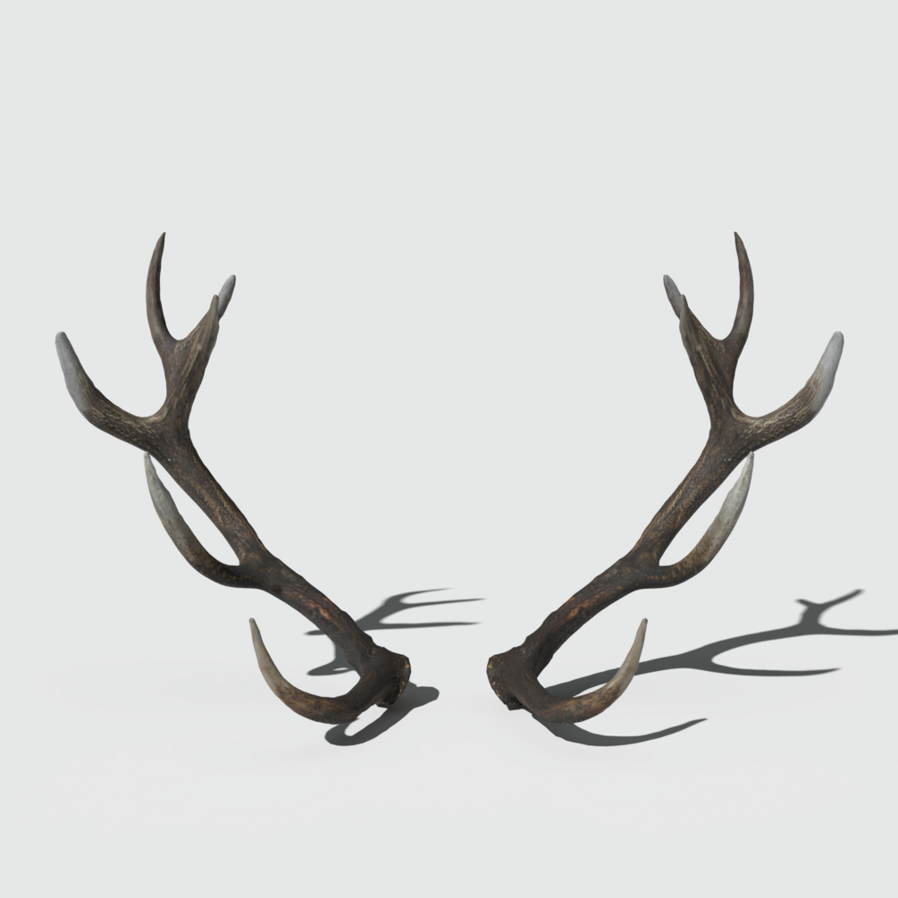 These are photo-scanned reed deer antlers. The file includes 2 separate models made in real world scale (54cm x 50cm x 75cm). It comes in following formats: